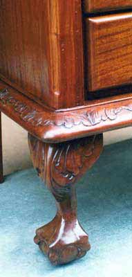 la pata "garra y bola" de un mueble inspirado con estilo chippendale |